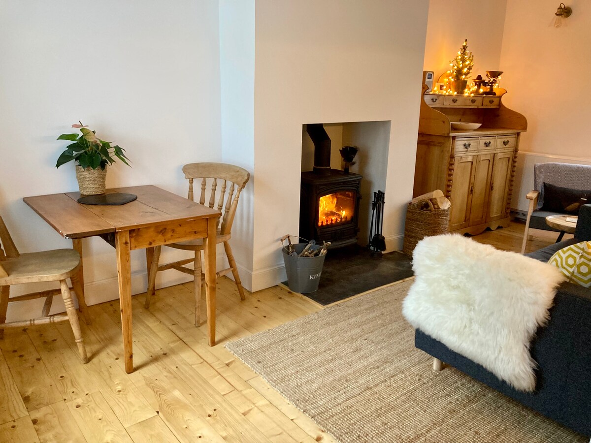 Acogedora casa rural costera con estufa de leña y vistas