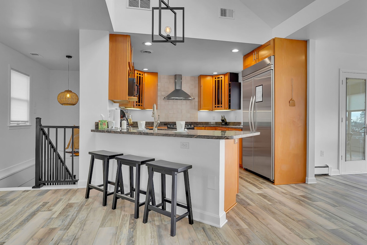 Remodeled in 2023, this light-filled, 2-story private home offers 2,100 sqft of stylish comfort—perfect for a relaxing getaway. Take in breathtaking sunsets from the double-decker porches overlooking the Chester River, unwind by the fire pit, host a crab feast or enjoy a BBQ on the private dock. Ideally located just 5-10 minutes from Kent Island’s top restaurants and wedding venues, with a community playground, pavilion, and boat ramp just steps away. Your waterfont escape awaits!