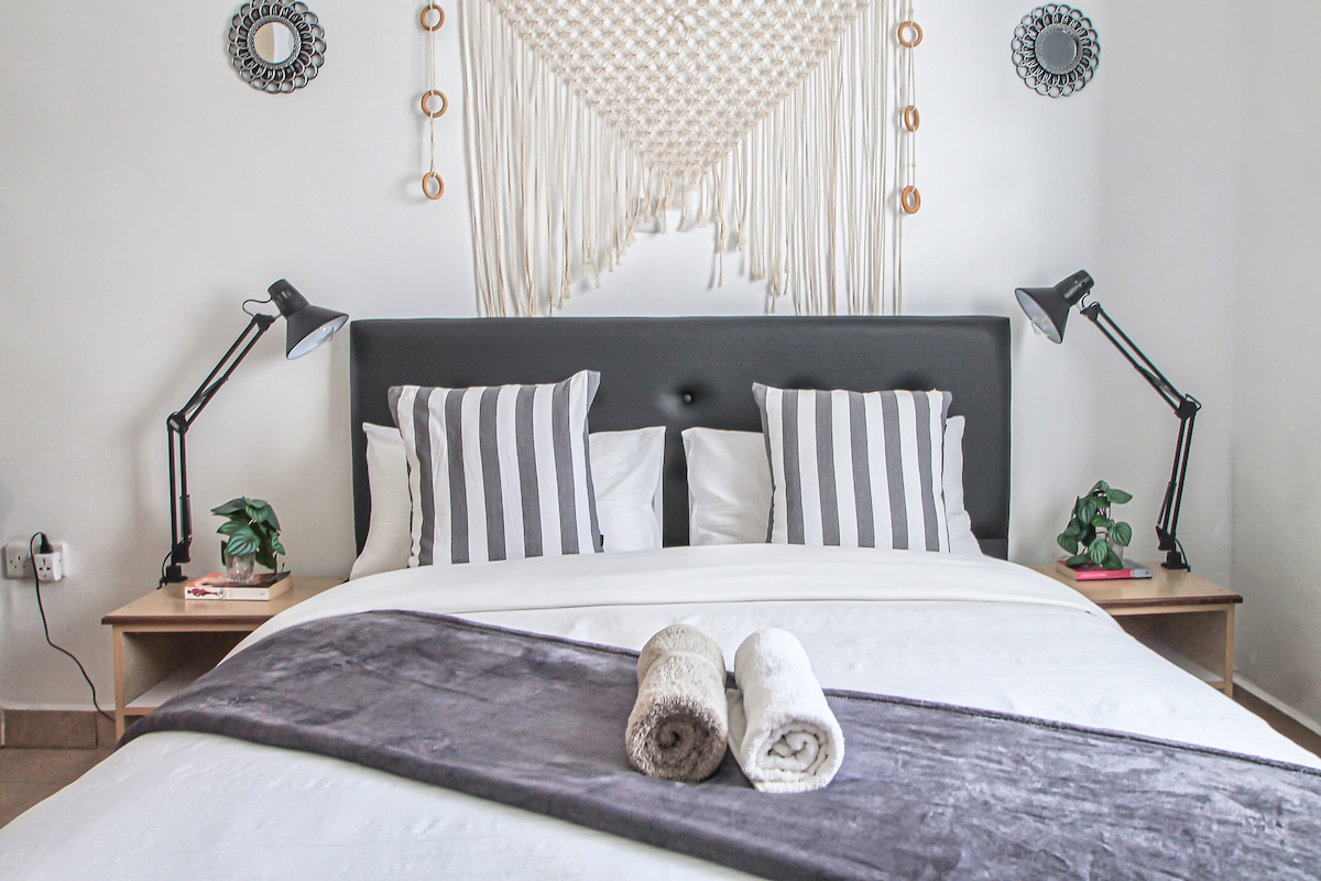Bienvenido a la casa bohemia del piso 17 en Kilimani. Esto es lo que ofrecemos: Vistas impresionantes del atardecer desde el piso🌅 17. 🛒🛍️A poca distancia a pie del centro Yaya. Comodidad de balcón🛋️ privado. Gimnasio 🏋🏾♀️totalmente equipado. Golf 🏌🏽♂️⛳️interior. 🏓Pimpón. 🚀Wifi rápido. 🍿Netflix Espacio de💼 trabajo. Restaurante 🧑🏾🍳turco en las instalaciones. Servicios de💆🏾♂️💆♀️ spa y masajes en la azotea. 🎲 📚 Libros y juegos Arte 🎨🪴original y plantas. ☕️Cafetera Cocina 🍳totalmente equipada. 🛌Colchón quiropráctico acogedor 🧹Servicios de limpieza a tu conveniencia. y mucho más…