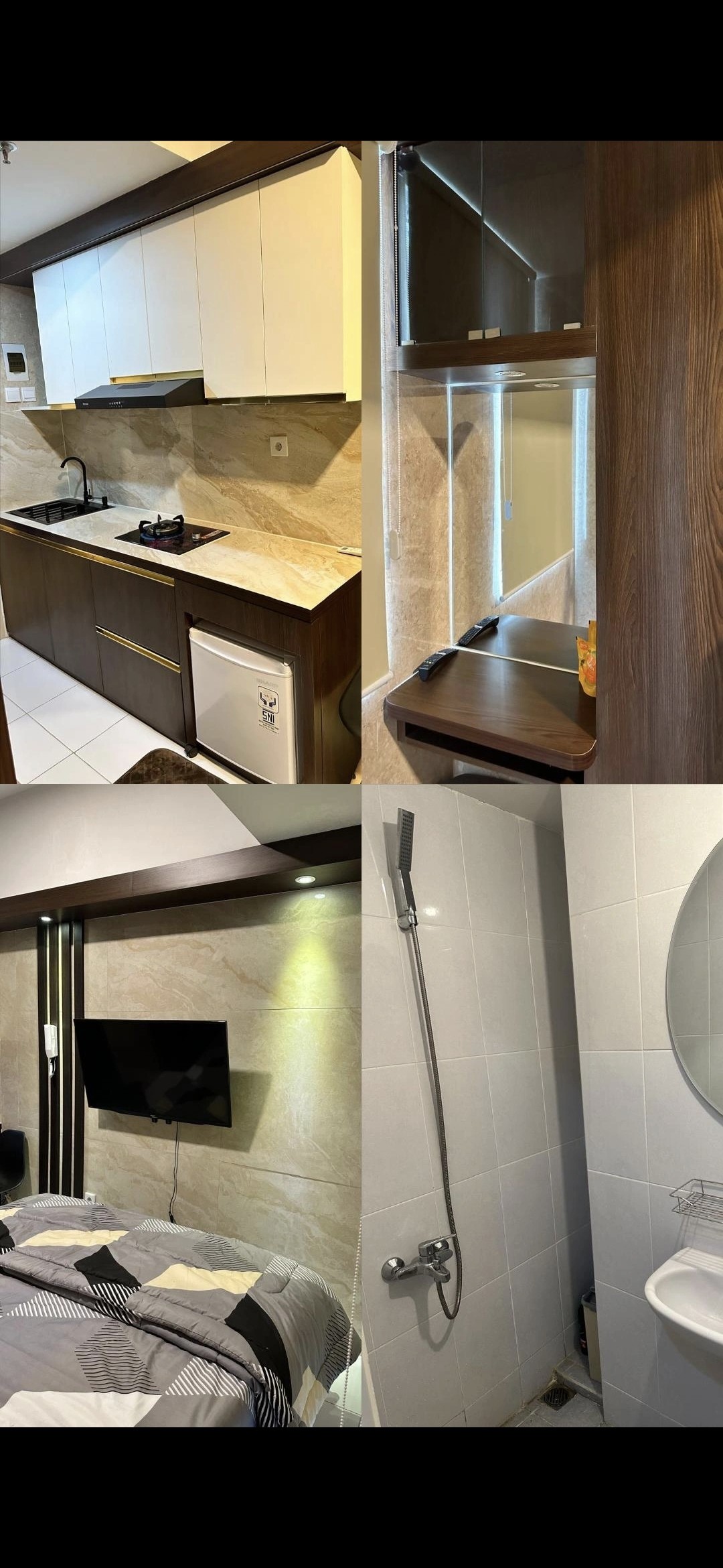 "Kaito Inn Royale” Experience hotel-like luxury in modern living at PIK 2 Tokyo Riverside. This stylish studio offers a luxurious 1-bedroom, 1 fully equipped bathroom, and a cozy, practical space for ultimate comfort. Amenities include: Air conditioning High-speed WiFi Smart TV (Netflix) Refrigerator Premium bathroom essentials Complimentary drinks Located above a bustling market and surrounded by top restaurants, enjoy the best of both convenience and comfort.