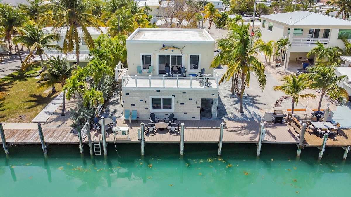 Welcome aboard Captains Rooftop, Your 4BR Rooftop Deck Hot Tub Oasis on a direct ocean access canal with 75ft of dockage. This three story stilted rooftop home provides a unique unforgettable Florida Keys experience for your entire family. 🏊♂️ 2 Luxury jet Hot Tubs (One on the roof, one in the backyard) ⛵ Private 75ft dock surrounded by a mangrove jungle 🕹️ Foosball Table 🍳 Rooftop patio with BBQ grill & open ocean view dining 💻 High-speed Wi-Fi for streaming & remote work 🛏️ Comfortable