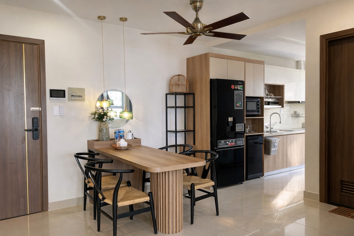 Alójese en un apartamento elegante y totalmente equipado en el corazón de Nha Trang, a solo 2 minutos a pie de la playa. Ubicado en una planta alta del edificio Gold Coast, el espacio es luminoso, espacioso y está diseñado para ofrecer comodidad, con una cama acogedora, balcón privado y cocina moderna. Despiértate con una luz suave, sal al mar y disfruta de la ciudad a tu propio ritmo. Ideal para parejas, viajeros solitarios o familias pequeñas, con un proceso de autorregistro sencillo.