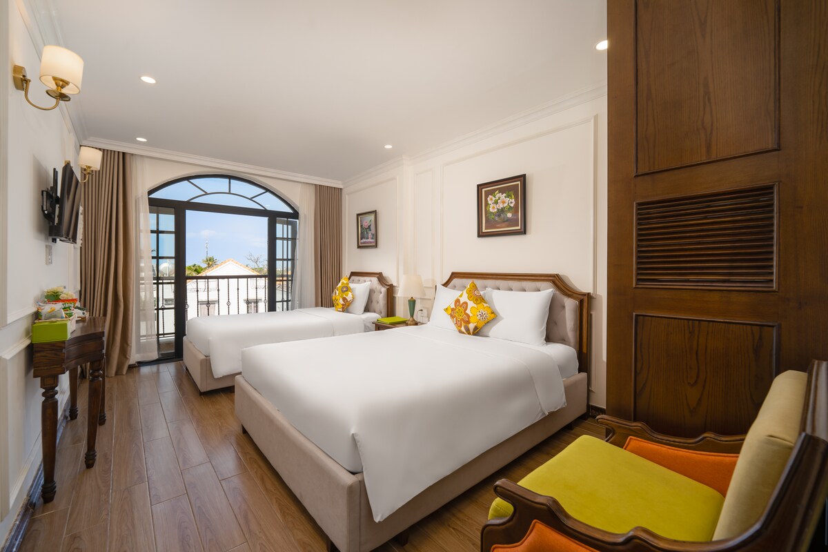 Bienvenidos, ustedes han elegido nuestra propiedad. Esta es una habitación grande, con 2 camas tamaño queen. El baño es privado y está dentro de la habitación. Capacidad estándar de 4 personas. Si ustedes van menos de 4, envíenme un mensaje para obtener un descuento en la tarifa de la habitación. Esta habitación está cerca de la playa de My Khe, justo en el centro y cerca de restaurantes, spa, instalaciones de bienestar. Siempre estamos encantados de apoyar cualquier información turística si la necesitas.