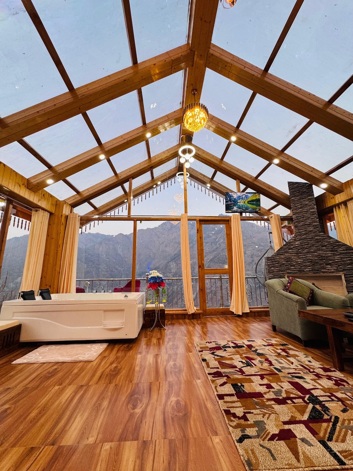 Bienvenido a nuestras hermosas casas de campo de nueva construcción con las hermosas vistas a las montañas, el río y el valle. Disfruta de la hoguera por la noche y toma el sol durante el día. Disfruta de todo el espacio privado con familiares y amigos. Todo el espacio tiene 1 villa dúplex con 2 camas dobles, 2 cabañas con cama doble con una cama doble cada una. perfecto para un grupo de 8 a 10 personas. El estacionamiento está disponible justo en la propiedad y es gratuito. No te preocupes por las comidas, ya que tenemos cocina disponible en el lugar.