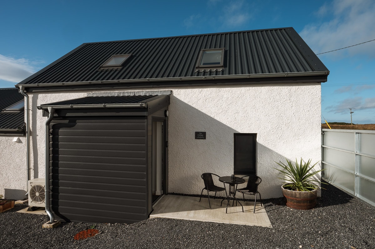 Well equipped one bedroom converted workshop right next to Lochindaal with open plan living/dining area and kitchen, log burning stove, television and free wifi. Bathroom - wc, sink and with an electric shower. Please note when trying to locate us, maps may take you to a group of houses on the opposite of the road to where our accommodation is. We are located on the sea side of the road.