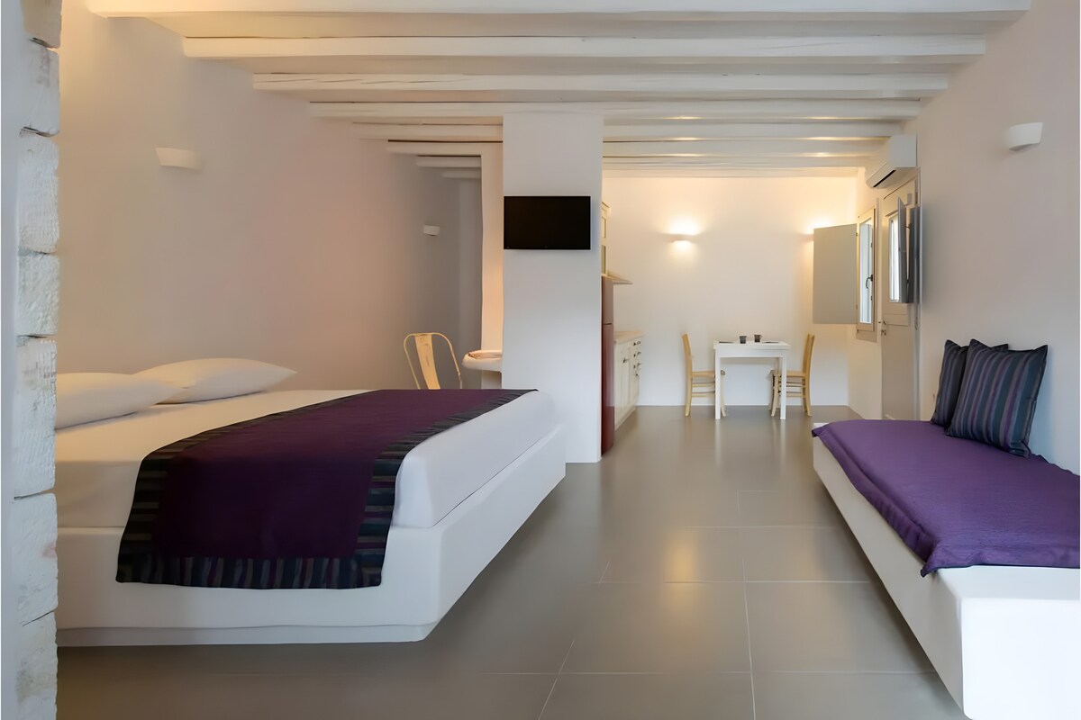 Original 70’s one-bedroom beauty with a modern twist. Located less than 70 meters from the sea and within walking distance from the main port of Milos, Adamas, this freshly renovated top floor studio is the perfect retreat after a day at the beach. Terrazzo floors are merged with beautiful modern finishes to create a warm and cosy environment. Our guests are provided with personal concierge service. The apartment can be serviced upon request.