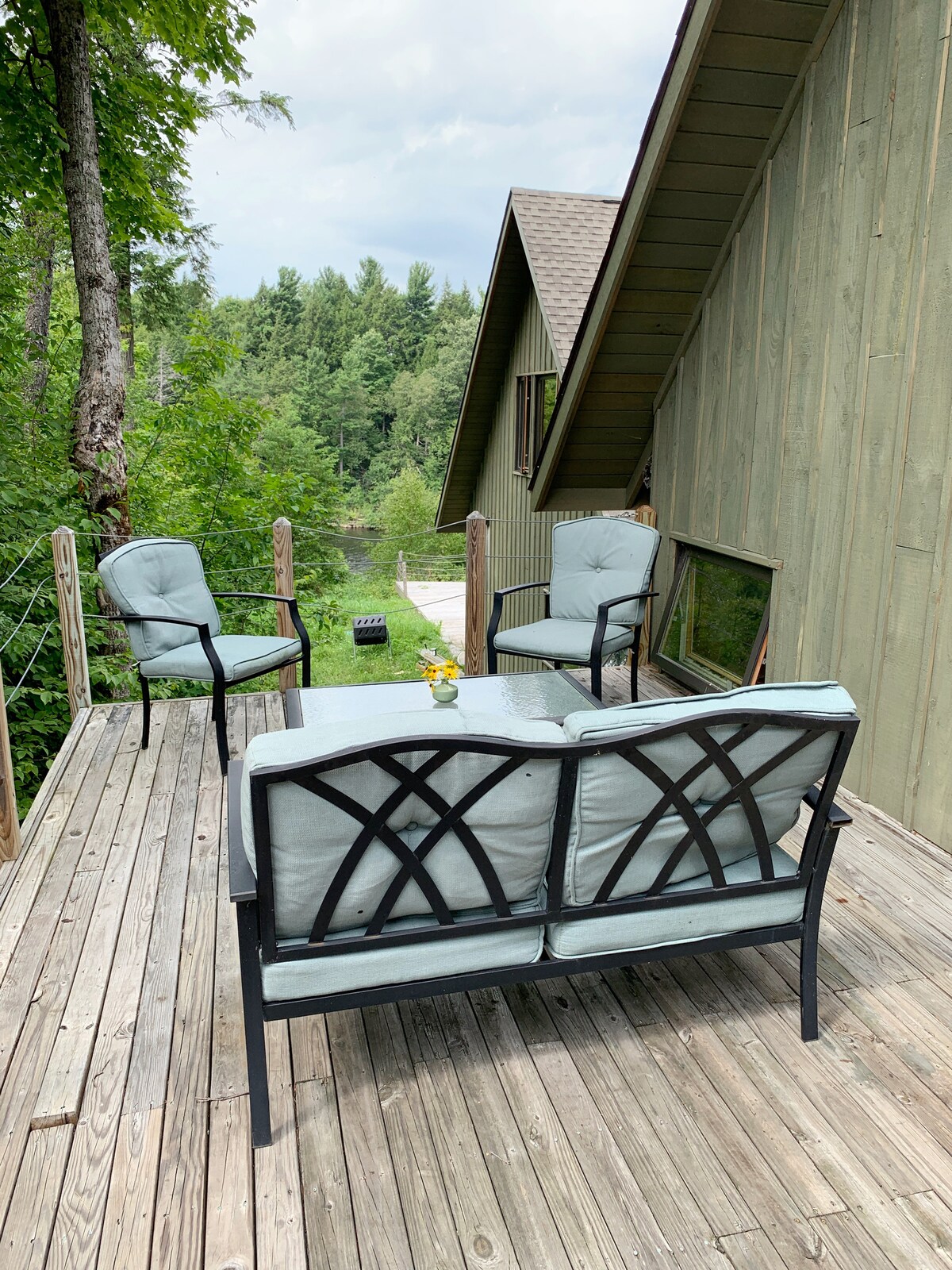 Descripción del anuncio * TODO INCLUIDO * (con variaciones estacionales) Jacuzzi~4 Embarcaciones~Pase de Parque~Bicicletas~Fuego y Ducha al Aire Libre~Huerto Una experiencia única te espera en nuestro molino de piedra caliza de 200 años de antigüedad. Este espacio ecléctico con entrada privada está ubicado entre dos cascadas en una isla en el río Salmon. La suite de 525 pies cuadrados bellamente equipada está justo en el borde del río. Cena y relájate en tu patio privado con vistas a las cascadas y al antiguo puente de un carril.