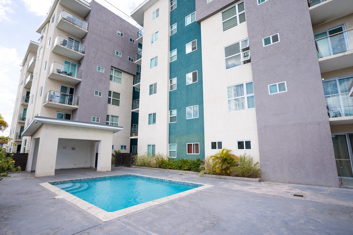 ¡Te damos la bienvenida a tu escapada perfecta que está ubicada en el centro de Kingston! Este moderno y elegante apartamento ofrece impresionantes vistas panorámicas de la ciudad de Kingston, sus vibrantes alrededores y el resplandeciente mar Caribe. Ya sea que estés de visita por negocios o por placer, este exclusivo alojamiento en Airbnb promete comodidad, comodidad y una experiencia inolvidable. El edificio tiene seguridad las 24 horas del día, 7 días a la semana, entrada cerrada y acceso controlado, lo que garantiza tu seguridad y tranquilidad.