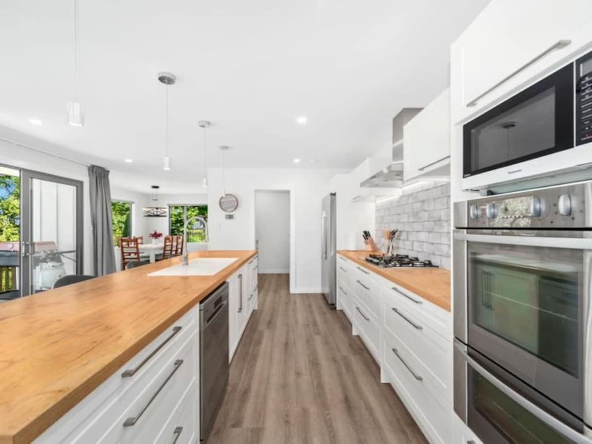 Este nuevo refugio diseñado por los galardonados arquitectos Designgroup Stapleton Elliott es una casa de vacaciones cuidadosamente equipada y la base perfecta para una escapada relajante. Acceso al lago, MTB y senderos para caminar justo al salir de la puerta con un paseo de 3 minutos a la orilla del lago, perfecto para aventuras o relajación. Configuración para familias y grupos; 2 camas tamaño king, 1 cama tamaño queen, 4 literas individuales tamaño king, 2 camas nido y 3 baños Rocket Espresso, trampolín, cargador Tesla EV A 15 minutos a pie de la tienda frente al lago. A 15 minutos en auto de Taupo.