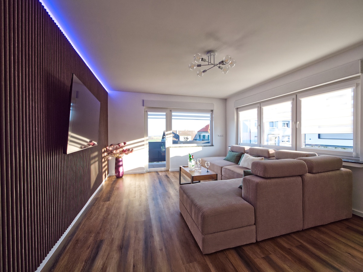 🌷Willkommen 🌷 In unserer kleinen Privaten Unterkunft im Industriegebiet! Über unserer Firma erwartet euch eine kleine Wellness Oase - ideal für Paare, die Entspannung suchen. Genießt die Tolle Aussicht vom Jacuzzi aus. Die Schiebefenster lassen sich alle komplett Öffnen. Lasst den Alltag hinter euch und genießt die Zeit zu zweit 🥂 * Bitte beachtet, dass die Internetverbindung momentan nicht so stabil ist*