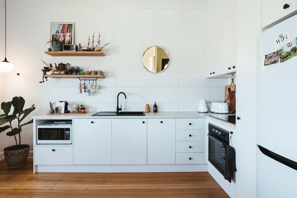 Te encantará mi apartamento. El barrio y la ubicación en la parte alta de la ciudad son ideales para parejas, aventureros solitarios, viajeros de negocios y familias (con hijos). Recoge fruta del jardín y, para empezar, desayuna huevos de corral y café gratis. Tiene unas vistas increíbles del campo, pero está situado en un lugar tranquilo y aislado justo en el corazón de la ciudad. A 5 minutos a pie de restaurantes, tiendas y del distrito financiero. Hermosos accesorios, instalaciones y accesorios hacen que este apartamento se sienta como en casa.