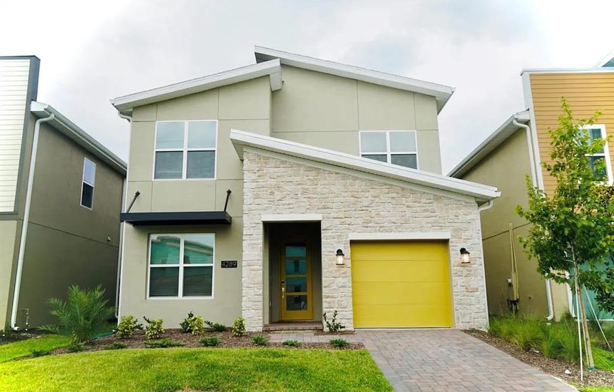 Moderna casa de 4 dormitorios junto a un lago con habitaciones temáticas cerca de Disney
