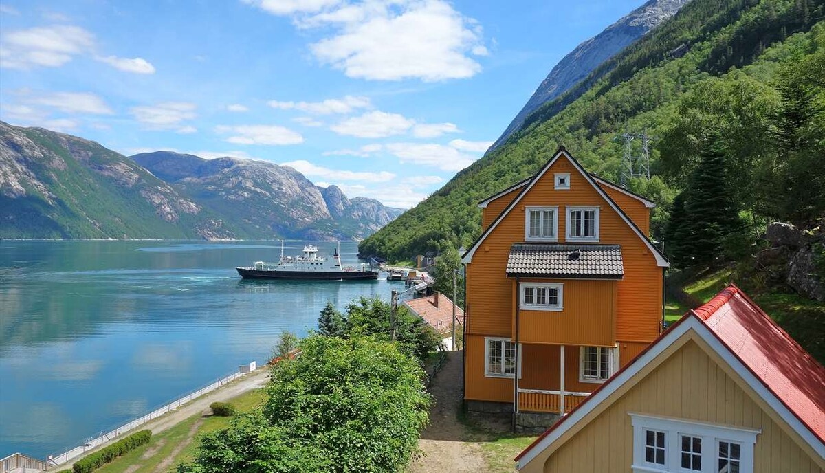 Preikestolen a 10 minutos del aparcamiento. Lea las reseñas de huéspedes anteriores. Las vistas son impresionantes, el lugar está protegido del tráfico y el ruido. Sol hasta las 22:20 en los días más largos. Alójese durante varios días y realice magníficas excursiones y suba a las cumbres de las montañas desde la puerta principal. A cinco minutos a pie, puede bañarse en un río con agua fresca de montaña. A poca distancia del centro de Jørpeland (10 minutos a pie, 5 minutos en coche) con todas las tiendas necesarias disponibles. En Instagram espen.brekke hay varios consejos de viaje