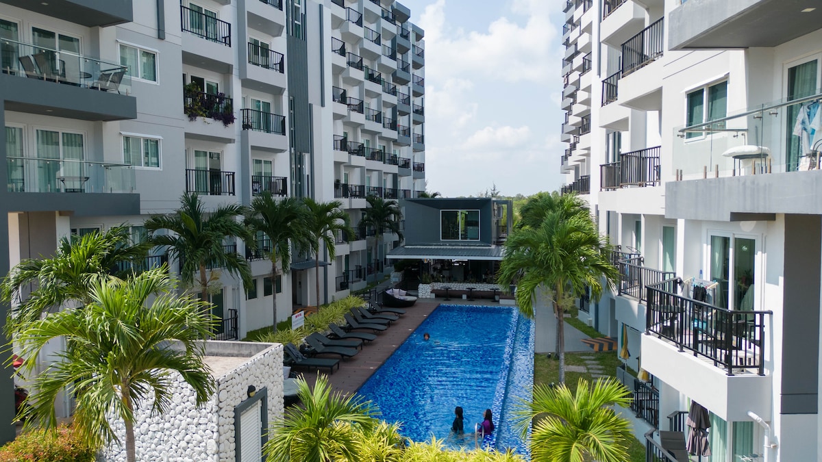Aquí está el mejor lugar para escapar de la multitud loca, el condominio está a pocos pasos de la playa privada de arena blanca, excelentes restaurantes, mercados y toda la diversión que Mae Phim tiene para ofrecer. Usted no tiene que compartir la vista, el agua y la piscina de la gente masiva, es todo suyo, es todo su mundo aquí. Podemos hablar Inglés,ภาษาไทย,普通话粤语, estamos a su servicio señor/señora! ¡Te deseamos una estancia agradable en nuestro departamento! ¡Felices fiestas, estamos aquí para ti!¡Podemos apoyar al propietario y Alipay!Conveniente y fácil.