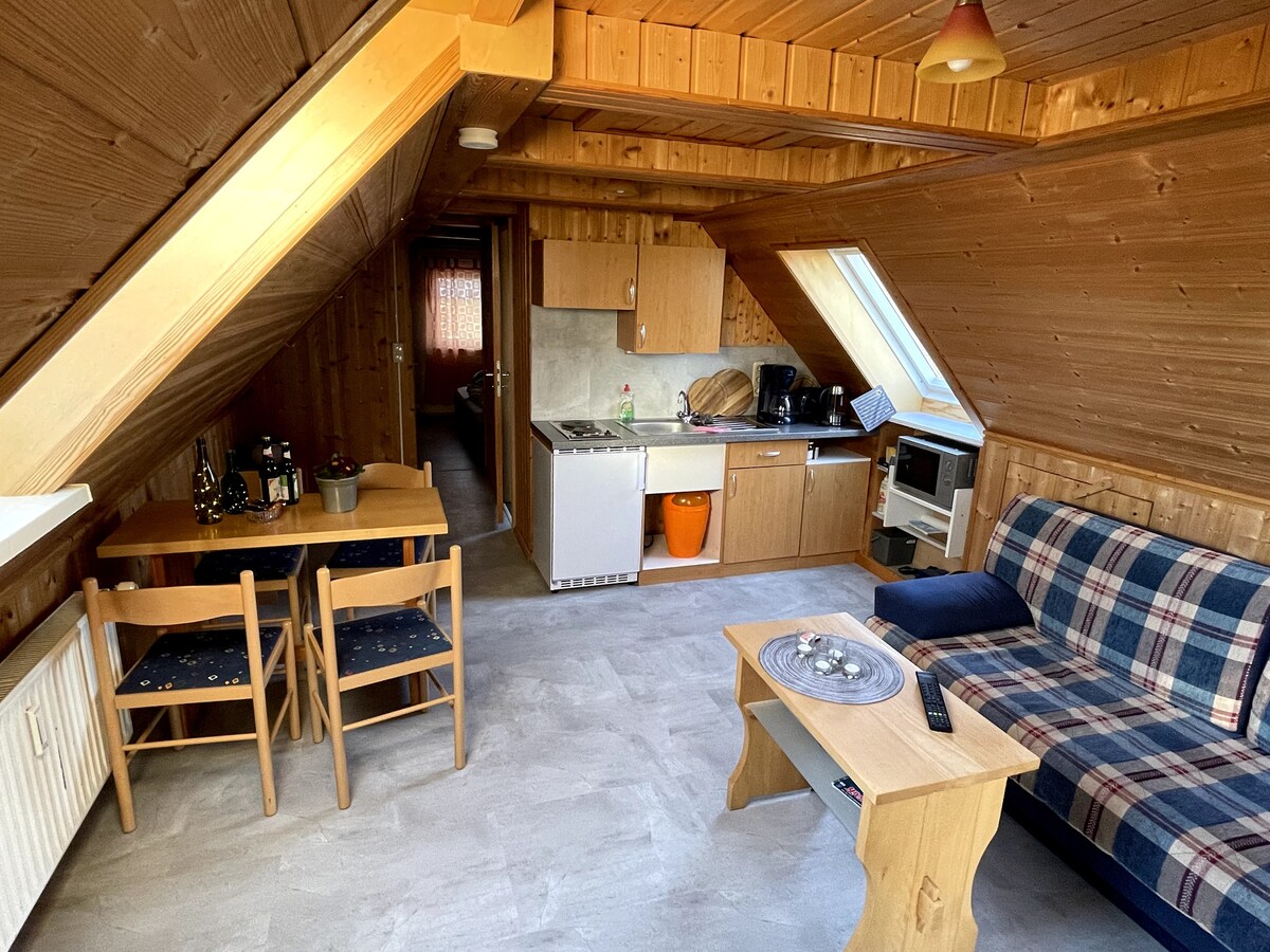 Se alquila un bonito y luminoso loft en un edificio de apartamentos a las afueras de Dresde, en el tranquilo barrio de Dölzschen. El loft consta de una cocina abierta con sala de estar, un baño con ducha y WC, el dormitorio está situado sobre la sala de estar en la parte superior del techo, al que se accede a través de una escalera con barandilla. En la sala de estar hay un sofá que se puede desplegar y, por lo tanto, en el loft pueden dormir 4 personas (2 personas en la cama en el dormitorio y 2 personas en el sofá cama).