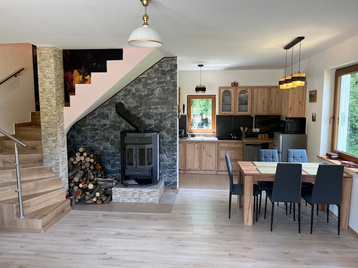 Casa de madera, situada junto a un bosque en un rincón aislado con hermosas vistas a las montañas para 8 personas. Un lugar tranquilo y encantador especialmente recomendado para personas que desean descansar en paz y tranquilidad. El período mínimo de alquiler es de 2 días. La entrada es hasta las 19:00. Salida hasta las 12:00. A unos 100 m se encuentra mi segunda casa para 6 personas llamada Klimcia. No proporciono toallas. El precio se aplica a toda la casa, independientemente del número de personas.