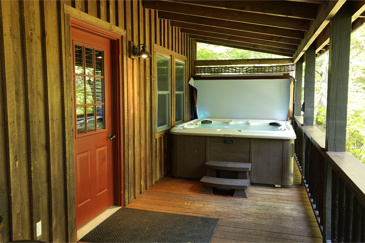 Cabaña Red Bend con vistas al río y jacuzzi.