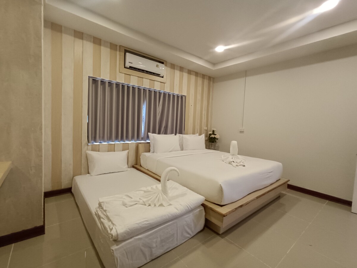 Enjoy a comfortable stay in our bright and spacious guest room, just a short walk from beautiful Klong Dao Beach. Perfect for couples, friends, or small families, this room features one double bed and one single bed, making it ideal for up to 3 guests. Stay close to the beach, restaurants, and local shops while enjoying a simple, relaxing atmosphere at our place. Perfect for guests who love comfort and convenience in a friendly island setting.