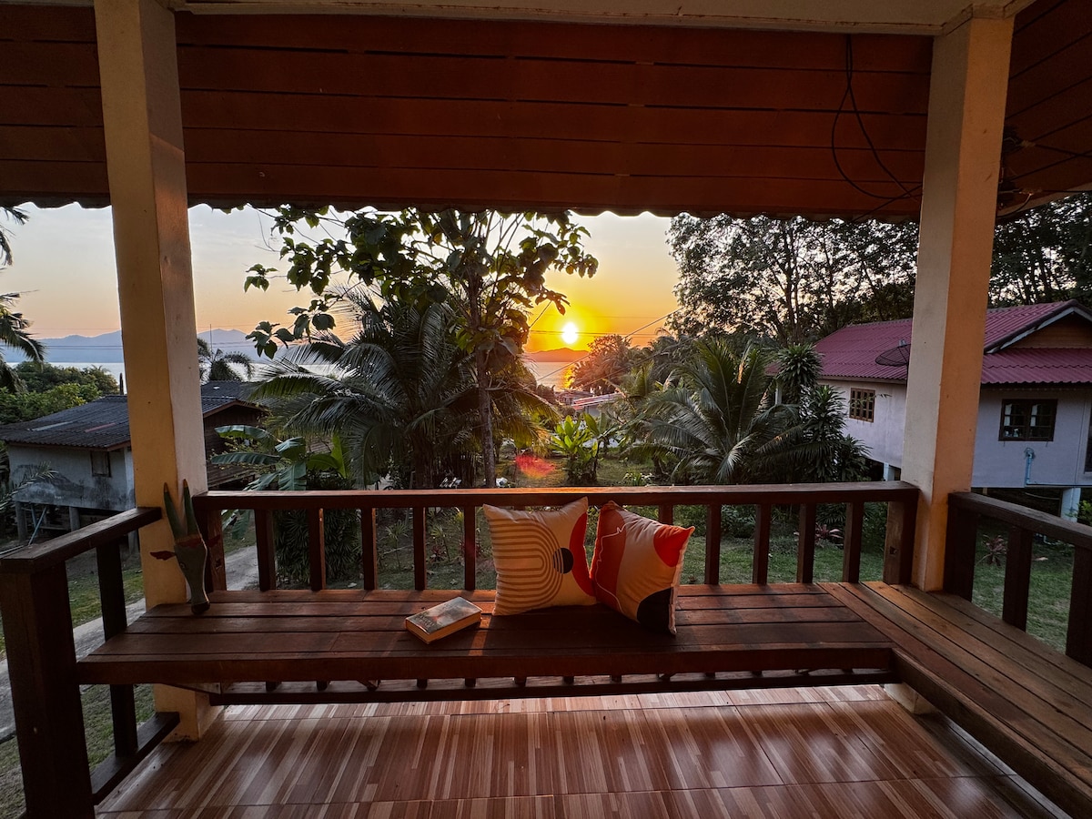 Esta preciosa casa está situada justo en la costa del atardecer de Koh Yao Noi. El gran balcón en la parte trasera de la casa se encuentra directamente sobre el mar y puedes relajarte mientras las olas rompen debajo de ti. Esta es la ubicación perfecta para disfrutar de una vista ininterrumpida del atardecer cada noche. La casa ha sido recientemente reformada con un alto nivel. Cuenta con aire acondicionado nuevo, una cama, muebles y utensilios de cocina.