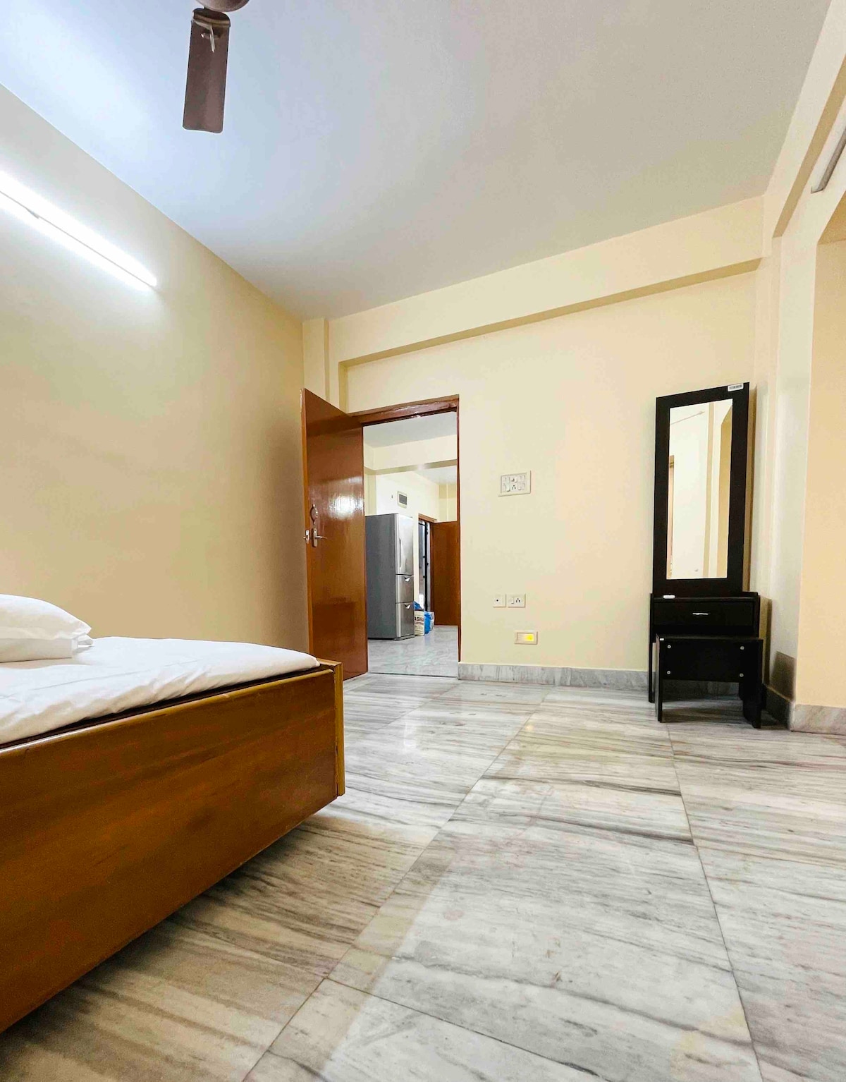 Departamento estudio entero cerca del aeropuerto de Calcuta. Ubicación :- 1.) A 4 km del aeropuerto internacional de Calcuta. 2.) A 1 km del centro de la ciudad 2 centro comercial 3.) A 3 km del parque ecológico. 4.) Múltiples hospitales a 5 km de distancia. 5.) Restaurante interno dentro del complejo del edificio 6.) Múltiples pubs, bares, restaurantes cerca a 5 km 7.) Todas las tiendas esenciales necesarias como tienda de comestibles, lavandería, panadería, tienda de verduras justo afuera del complejo. # Envíame un mensaje para reservaciones grupales o estadías cortas que mejor se adapten a ti #