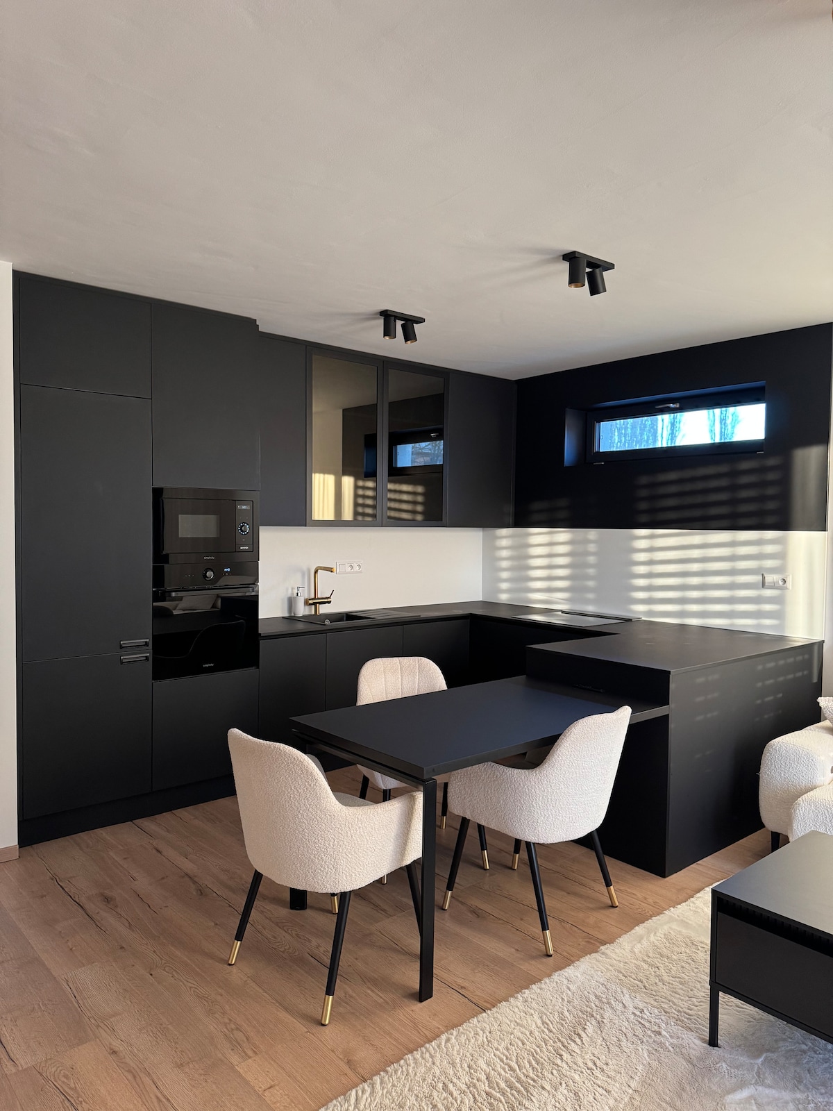 Este moderno apartamento se encuentra en una calle tranquila en un complejo de nueva construcción, con muebles nuevos y un ambiente acogedor. Cuenta con una cómoda cama y una cocina totalmente equipada. Relájate en la terraza, disfruta del pequeño parque o relájate con el televisor inteligente Samsung. Para las estadías de 3 noches o más, también puedes utilizar la lavandería. A solo 5 minutos a pie encontrarás una tienda de comestibles Jednota, Tripls Burger y Gym X, el gimnasio más grande y moderno. El río Váh está a solo 10 minutos a pie.