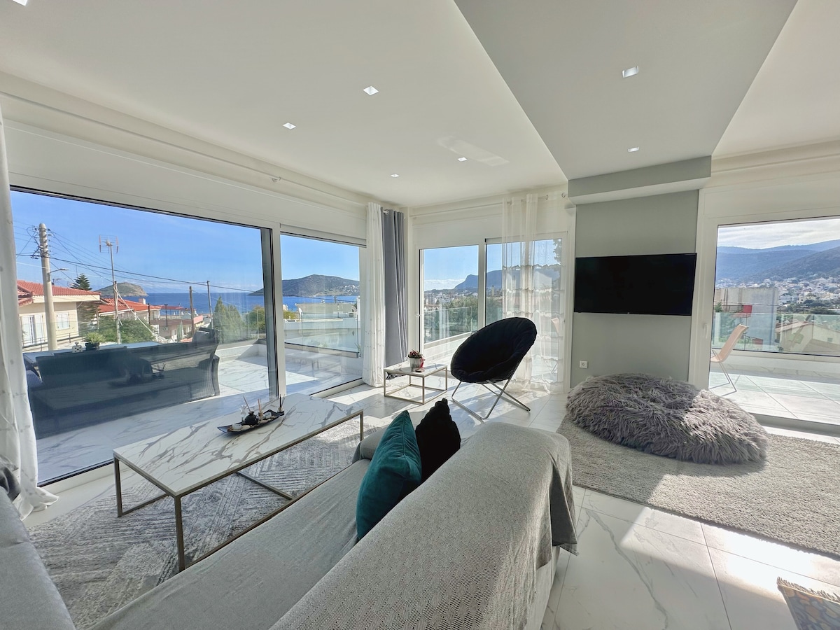 Nuevo ático modernamente equipado frente al mar en la ciudad turística de Porto Rafti en Ática, a 20 minutos en coche del aeropuerto de Atenas. Apartamento de 120 metros cuadrados con una gran terraza con vistas increíbles al mar. El jacuzzi y los enormes sofás en la terraza, así como el exquisito diseño de la casa, te permitirán relajarte y disfrutar de tu estancia con nosotros. El apartamento está situado en la parte central del centro vacacional y da directamente al paseo marítimo con muchos cafés, restaurantes y tiendas para tu paseo nocturno.