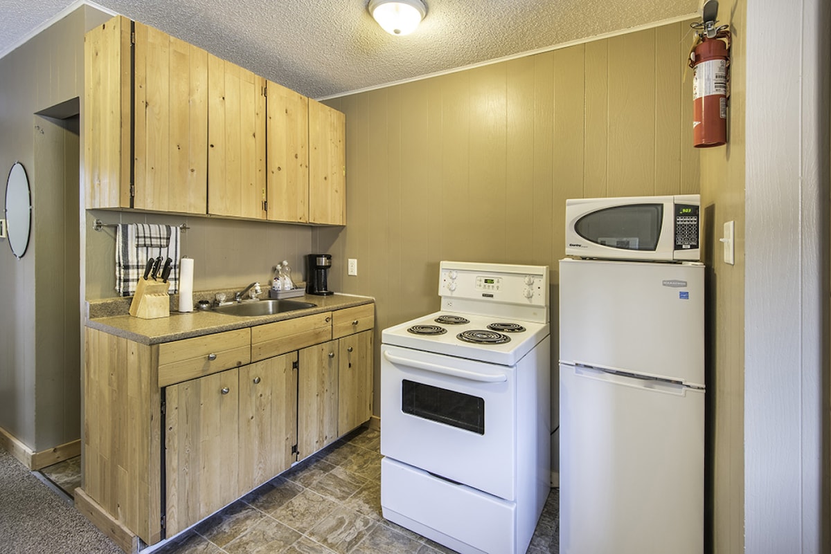 These are 1 bedroom units with two beds. They have a small living room and small kitchen. Suitable for two people. Lone Star Motel: your Rossland Basecamp. It isn't a fancy place, but it's clean and affordable. And just steps away from your next adventure.