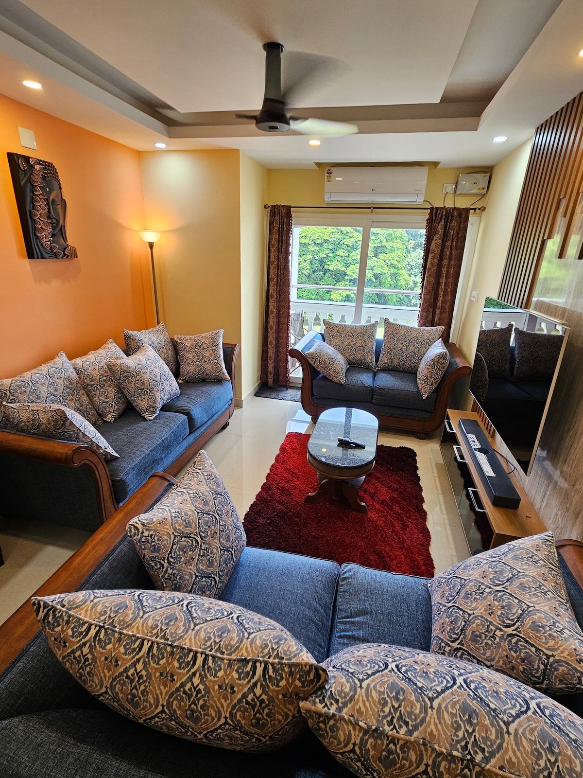 ¡Te damos la bienvenida a Canopy! Un tranquilo alojamiento de 770 pies cuadrados con temática verde y de aves en Kochi, donde la comodidad de la ciudad se encuentra con la naturaleza relajante. ¡Despiértate con el canto de los pájaros, disfruta de las puestas de sol desde el balcón y relájate en nuestro espacio tranquilo y hogareño! Servicios Y comodidades: • Sala de estar con balcón, dormitorio y baño. • Aire acondicionado, TV de 55 pulgadas, lavadora • Escritorio con wifi. Proximidad: • Ubicación céntrica con cafés y tiendas cercanas. • A 4 km de Infopark y del Hospital Sunrise. • A 45-50 minutos del aeropuerto. • A 30-35 minutos de las estaciones de tren.