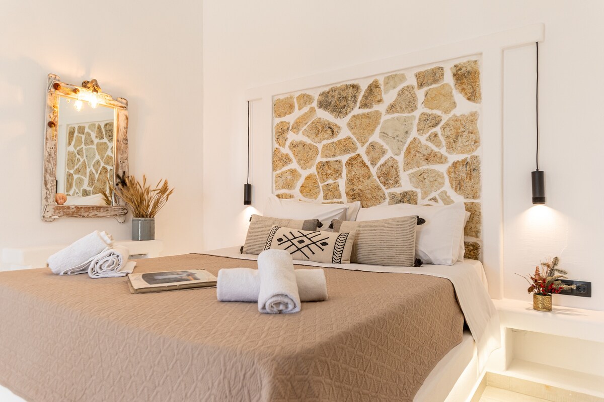 This Island Suite is an inextricable part of "Georgilas Cave House". At the time when GCH was a lively farm, “Rosy Ipostatiko”; along with its twin "Velvet Ipostatiko", were serving as warehouses for the storage of the farm's production. Today, they have been converted into two picturesque Cycladic studios, which can perfectly accommodate couples which seek romance, relaxation, privacy and comfort, as well as young parents!
