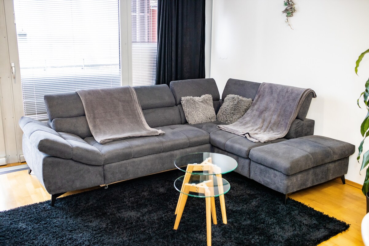 Modern clean and cozy apartment just steps away from nature and city center. Surroundings of the apartment offer plenty of activities all accessible by foot: - You can indulge in beautiful hiking trails in the city forest or take your kids to playgrounds (3 min walk). - You can visit the ZOO (5 min by car) and city center is easy accessible by bus, car or by foot (25 min walk). Food shops, pharmacy, drug store and bakery (3 min walk), Bus stop (1 min walk).