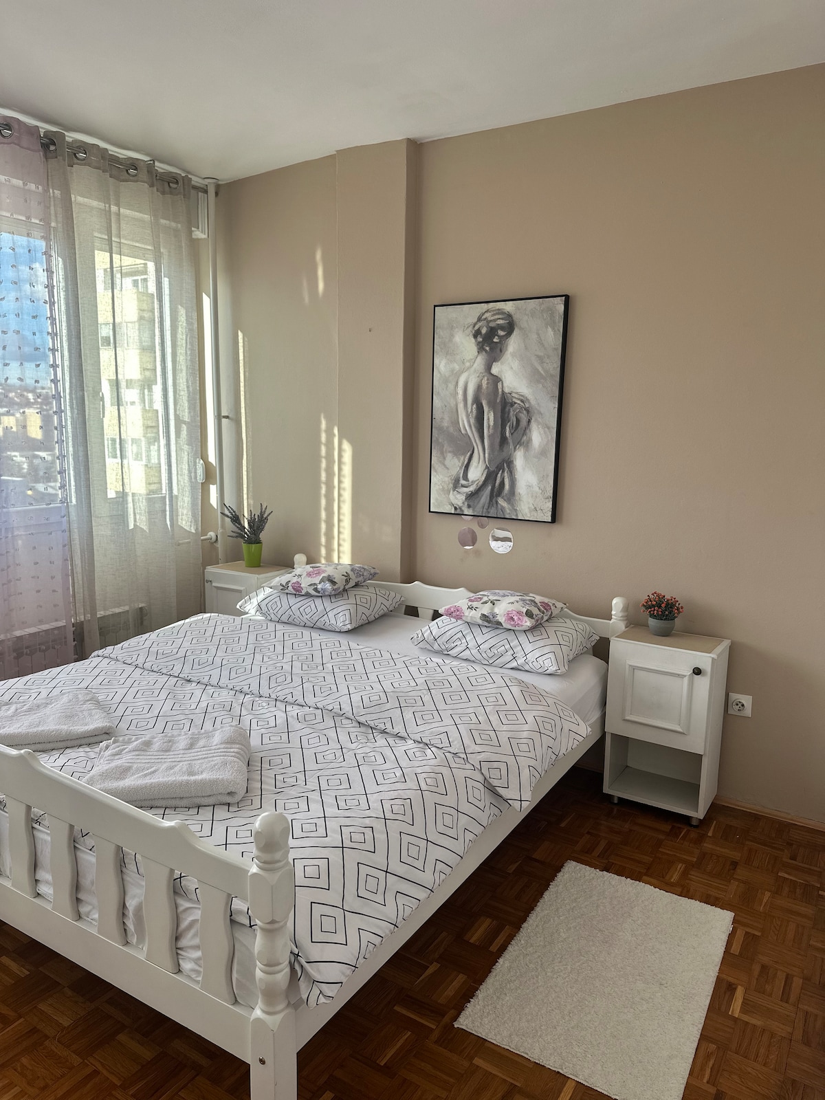 Precioso apartamento de 2 dormitorios en el corazón de Banjaluka. No se puede superar esta ubicación: el parque «Petar Kocic» está al otro lado de la calle. La plaza principal de Banjaluka («Trg Krajine») está a 1 minuto a pie, así como la famosa calle «Gospodska». El apartamento está en el centro de la ciudad, cerca de todo. También puedes disfrutar de unas vistas preciosas de la ciudad desde nuestro balcón del décimo piso. Hay dos ascensores en el edificio.