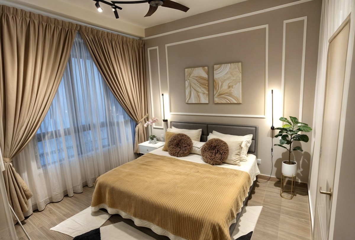 Alójate en el corazón de Kota Bharu y disfruta de la máxima comodidad. Ubicado a pocos pasos del centro comercial KB y UTC, puedes comprar, cenar y acceder a lo esencial sin necesidad de un automóvil. Rodeado de muchas opciones gastronómicas. Esta unidad totalmente amueblada y con aire acondicionado cuenta con una cama tamaño queen, sofá cama, televisor inteligente de 43 pulgadas, lavadora, nevera, plancha, balcón e Internet de fibra de alta velocidad de 100 Mbps, perfecto para trabajar o alojarse.