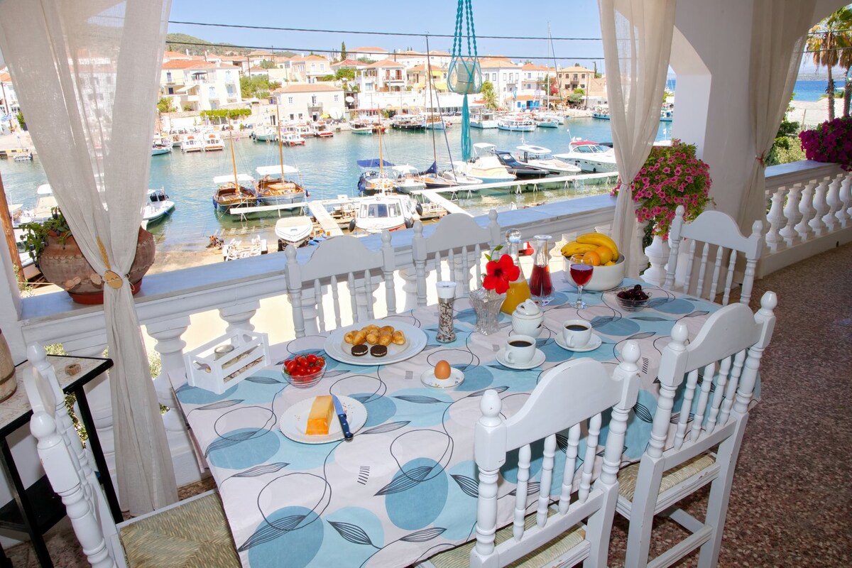 The most beautiful apartment in the OLD PORT, in the most CENTRAL spot overlooking the sea in a completely quiet neighborhood & cool breeze! FULLY RENOVATED with wonderful MATERIALS & amazing EQUIPMENT, the only sure thing is that you will love it! within walking distance from all major sights of SPETSES town (1 mile away from the town' s centre). Easy access to the island's road system. You can easily drive to all of the island's sights and beaches.