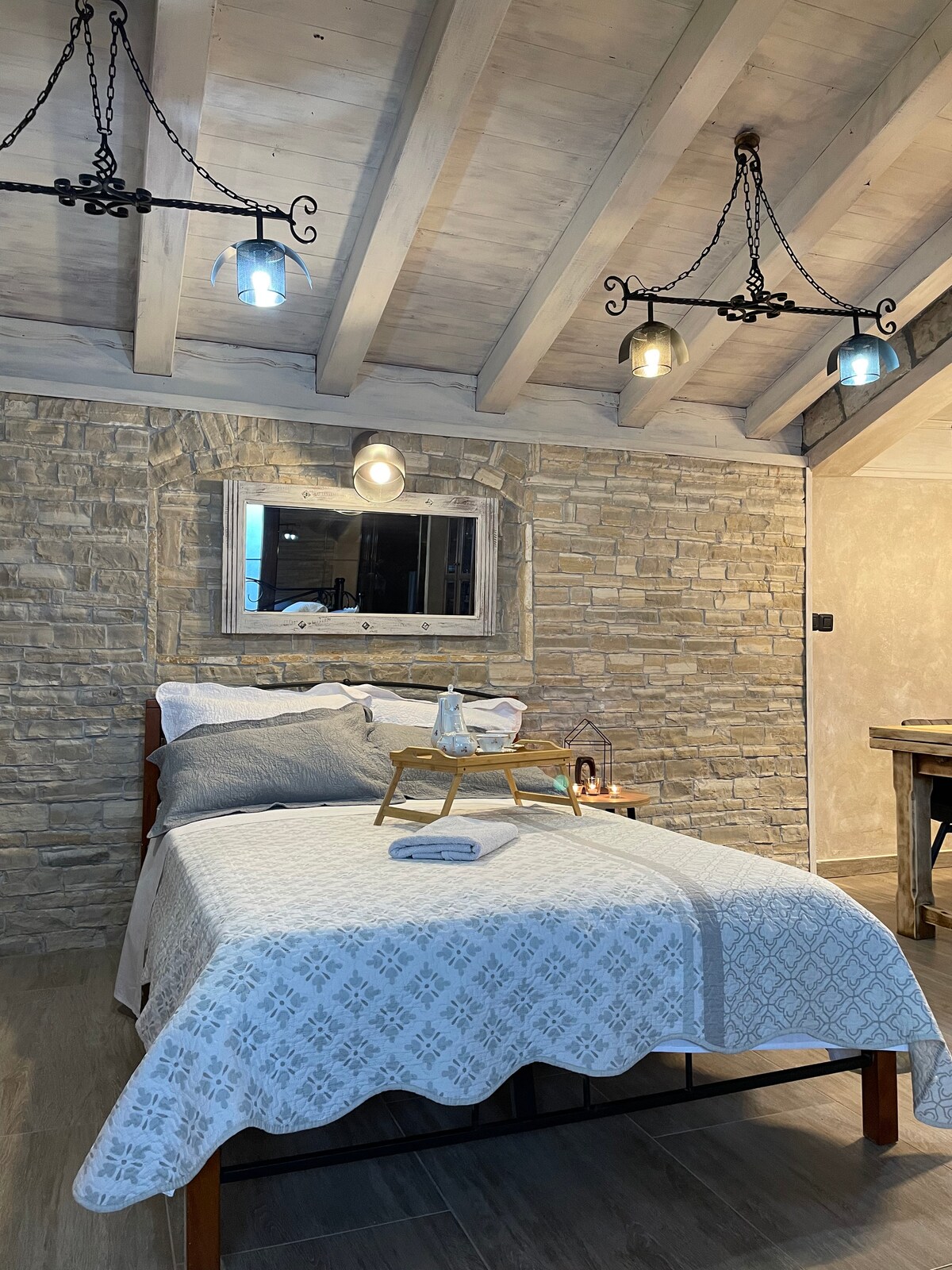 GT es un espacioso apartamento en la planta superior, con 2 terrazas privadas en la azotea, con jacuzzi al aire libre. Hay 2 dormitorios en suite, cocina,comedor/sala de estar con chimenea. El segundo piso cuenta con una sala de estudio/oficina que se abre a dos patios en la azotea, uno para descansar y disfrutar del jacuzzi, mientras que el otro tiene una cocina al aire libre con una parrilla tradicional de leña y un comedor al aire libre.