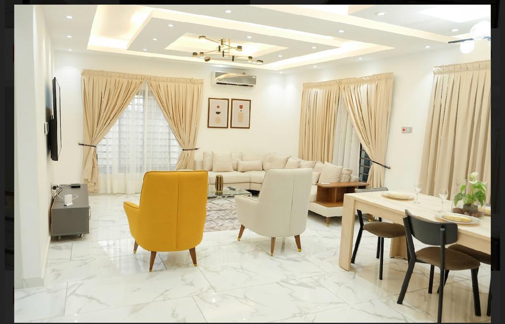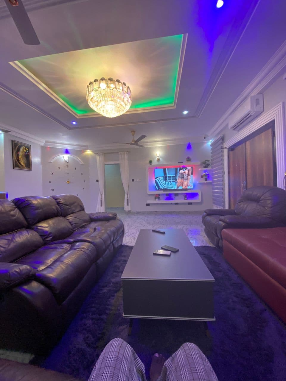 Luxurious 6-Bedroom Apartment for Short Stay! Enjoy a relaxing getaway in our stunning 6-bedroom apartment, equipped with: - 2 Master Bedrooms with Jacuzzis & solar-heated water - Air-conditioned rooms with fans for ultimate comfort - Spacious hall for entertainment or relaxation - Fully-equipped kitchen for self-catering - Dining area for family gatherings - 5 Washrooms with shower facilities for convenience Perfect for families, friends, or corporate stays. Less < 30mins drive from Airport