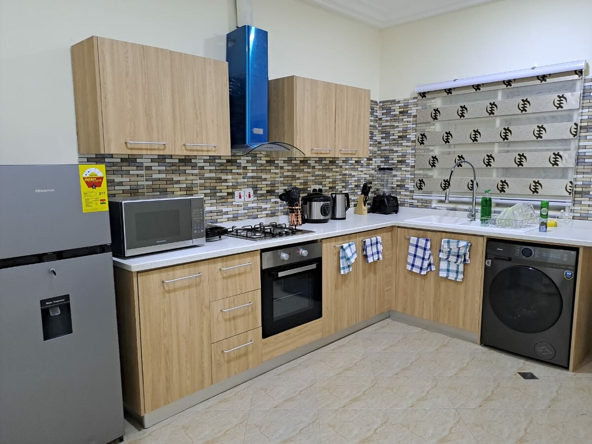 ¡Te damos la bienvenida a tu hogar lejos de casa! Este elegante y cómodo departamento de 2 dormitorios está ubicado en la tranquila y próspera zona de Tema Community 25, ideal para familias, parejas o viajeros de negocios. El espacio cuenta con dos dormitorios con camas cómodas, amplio espacio en el armario y mucha luz natural. Disfruta de una cocina totalmente equipada con electrodomésticos modernos, ideal para preparar tus comidas favoritas. El área de comedor ofrece un espacio acogedor para disfrutarlos juntos.