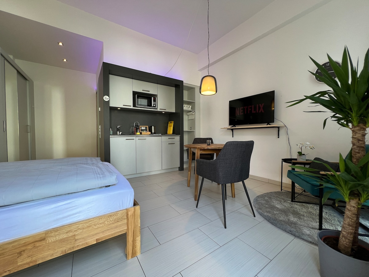 ¿Estás buscando un apartamento elegante por poco dinero? ¿Cerca de la ciudad y del servicio de estilo hotelero? ¡Entonces te sentirás como en casa en este apartamento en el distrito Oststadt de Karlsruhe! El departamento está totalmente equipado con una cama de 1,40 m y gimnasio en el edificio. Llegada autónoma➤ las 24 horas, los 7 días de la semana, con código PIN ➤ Cocina totalmente equipada + cafetera Nespresso WLAN ➤ rápida (>100 MBit/s) TV 4K➤ Ultra-HD con Netflix ➤ Diseño retro moderno ➤ Terraza: ducha de lluvia➤ relajante. ➤ Estacionamiento subterráneo