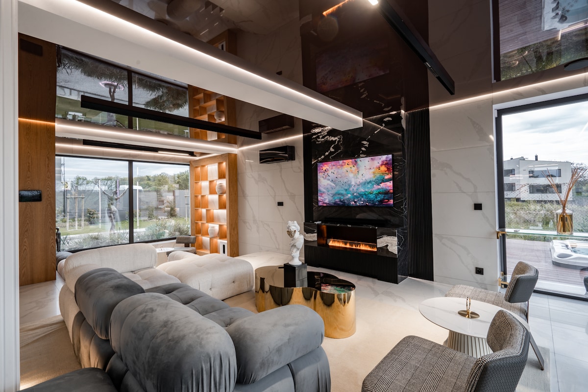 Apartamento nuevo y moderno, situado en una zona tranquila de Praga, cerca de un parque y a sólo 15 minutos del centro de Praga. Es adecuado para 2 personas que buscan el ajetreo de la ciudad y al mismo tiempo quieren disfrutar de una noche agradable después de un día agotador, sentados en una terraza privada de 30 m2, bajo una pérgola en su propia bañera de hidromasaje con agua climatizada durante todo el año o relajarse en una amplia sauna privada. Para hacer el romance aún más agradable, simplemente encienda la chimenea eléctrica. Aparcamiento gratuito en el garaje común.