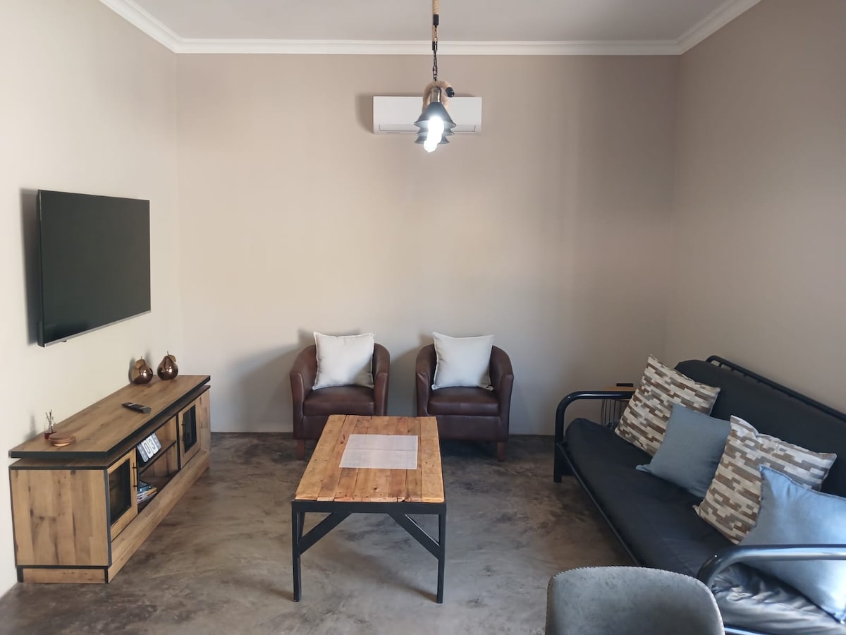 Situado en la finca de golf de Kranspoort. Kranspoort está a 5 km de la presa de Loskop, a 40 km de Middelburg y a 40 km de Groblersdal. Está perfectamente ubicado para las personas que viajen a Kruger. Esta casa funciona con energía solar y tiene wifi sin límites. Los animales, como cebras, gacelas, kudús, jabalíes, jirafas y gálagos son visitantes frecuentes. Cocina totalmente equipada. Smart TV con Netflix. Instalaciones en el sitio: pesca, golf, golf con disco volador, safaris, rutas de senderismo, peluquería, salón de belleza y restaurante.
