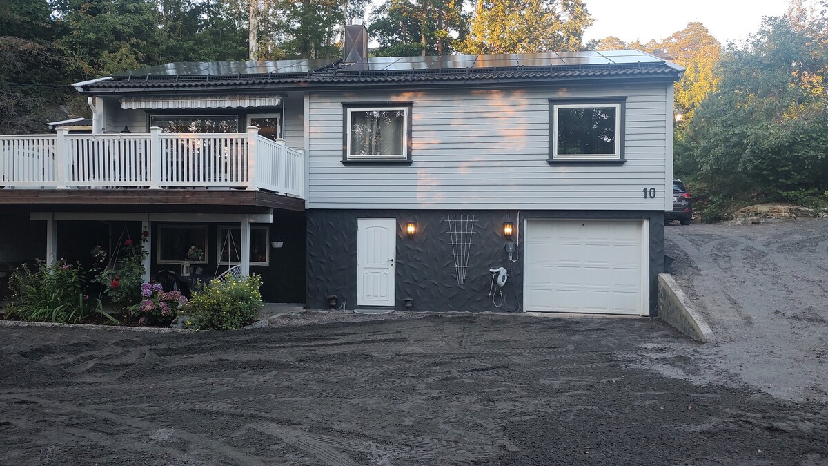 Acogedor y céntrico apartamento con sala de chimenea y baño con hermosa bañera y acogedor patio. A 4 km del centro de la ciudad con ferry, tren y autobús. Acceso a una gran piscina climatizada con superestructura en una parcela tranquila en un lugar sin bosques. Estacionamiento gratuito justo afuera. Parque infantil, campo de fútbol y excelentes zonas de senderismo cerca, así como centro comercial, zona de natación con playa de arena y bolera a 1 km. Posibilidad de alquilar un cargador de auto eléctrico. Para alquilar más habitaciones, busca: http://airbnb.no/h/mormorsbasseng