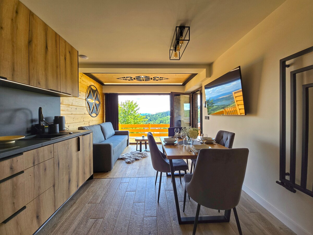 ¡Departamento de un nivel (100 m2) ubicado en una casa de madera a una altitud de 1050 sobre el nivel del mar! La entrada es independiente. El apartamento tiene una gran terraza, ofrecemos tumbonas. Las vistas de las montañas "entra" en la sala de estar:) Puedes estacionar tu auto en la propiedad. La sauna y la chimenea son gratuitas ,el jacuzzi 2x (jacuzzi de madera) pagó extra. Puedes llegar a Gubałówka a pie(1 hora) e ir por teleférico hasta Krupówki (4 minutos). Alrededores: rutas de senderismo y ciclismo, ¡pistas de esquí!