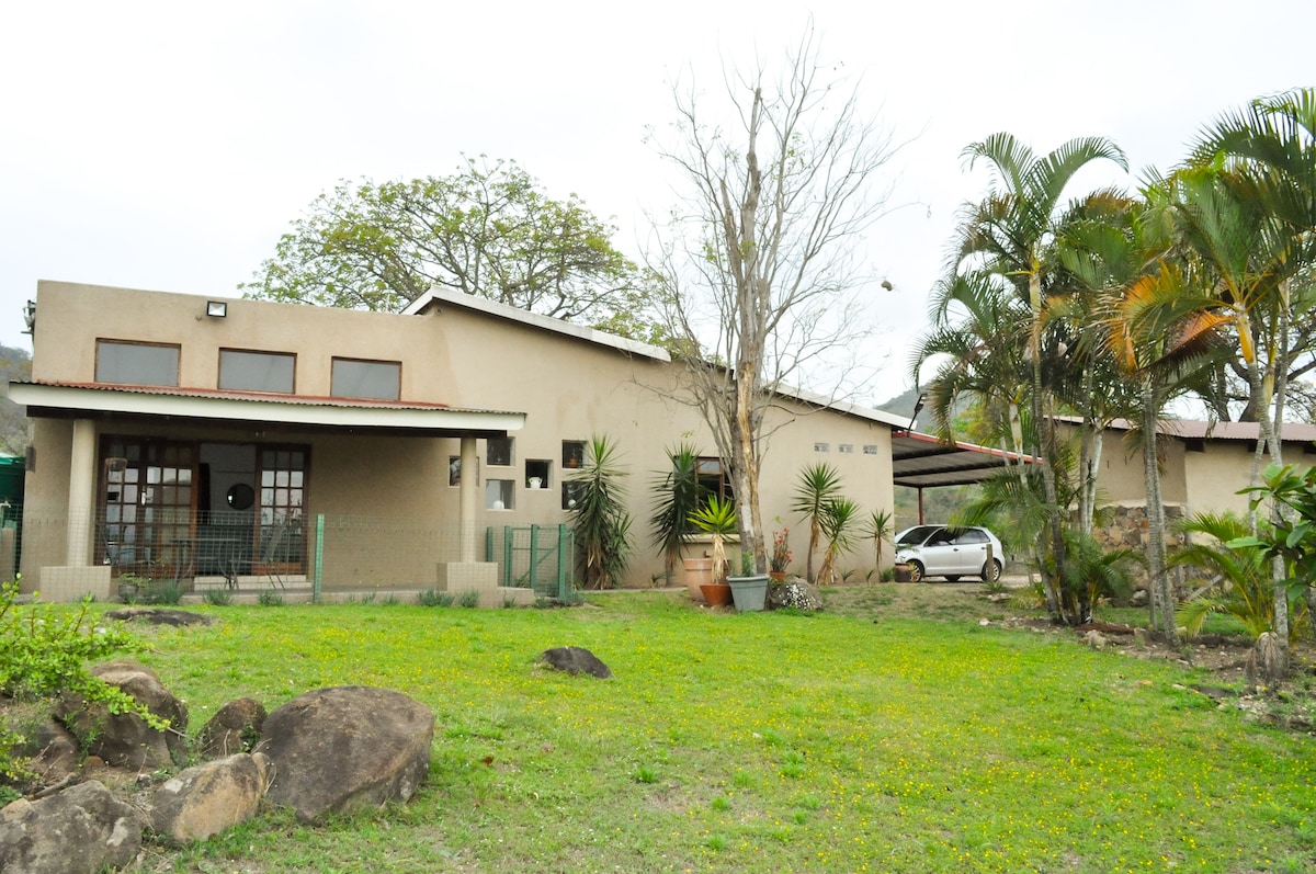 Una hermosa y tranquila cabaña en una zona rural pero accesible. Perfecto para amantes de la naturaleza y observadores de aves. Con senderos fáciles para caminar adecuados para cualquier nivel. Cerca del Parque Nacional Kruger y de las maravillas de Mpumalanga, como 3 Rondawels, cascadas Sabie y peregrinos. Aunque todavía está cerca de todos los servicios que ofrece Nelspruit. Paseos a caballo, senderos para bicicletas de montaña, campo de prácticas de golf, tirolina están todos cerca. También es ideal para aquellos que quieren relajarse y disfrutar de la paz y tranquilidad que ofrece este lugar.