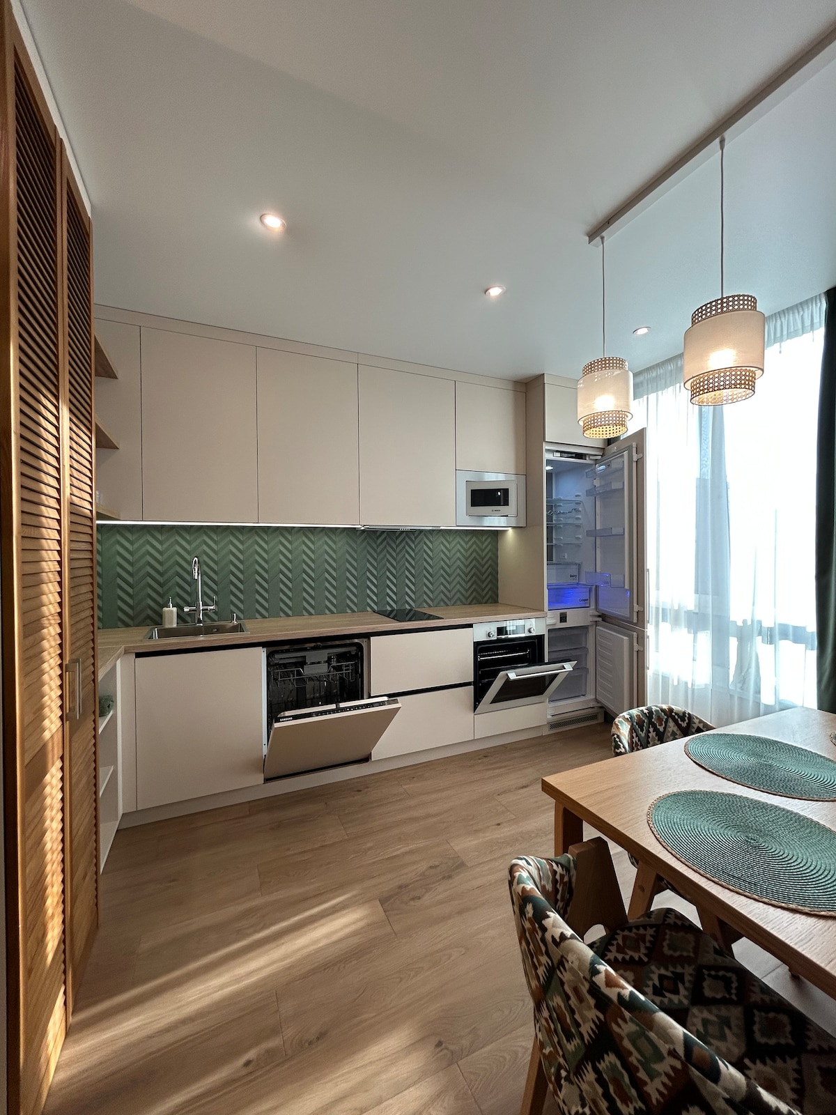 El departamento es adecuado para 1–4 personas.✨ Apartamento en un edificio nuevo, 37 metros cuadrados. Distribución: una cocina completa, un dormitorio con una cama doble y una ventana panorámica, una sala de estar con un sofá para dos (hay una cama adicional), un baño estético con una ducha grande y un amplio armario. Equipado con electrodomésticos nuevos: Refrigerador, lavavajillas, estufa de inducción, horno, microondas, filtro de agua, lavadora y secadora, aire acondicionado, calefacción por suelo radiante Hay estacionamiento gratuito y refugio disponibles. Te estamos esperando.🤗