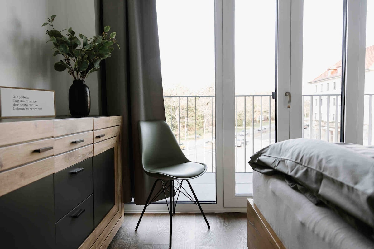Bienvenido a la ciudad Bauhaus de Dessau. Disfruta de una experiencia con estilo en este alojamiento céntrico con: -> Balcón en la sala de estar con vistas a "las siete columnas" -> la mejor ubicación céntrica a pie y también en coche -> estacionamiento privado directamente en el alojamiento -> Ascensor y acceso sin escalones -> 7 minutos a pie hasta la estación principal -> 5 min al Patrimonio de la Humanidad BAUHAUS -> 2 minutos hasta las casas maestras de estilo Bauhaus de fama mundial -> 15 minutos hasta el bonito Kornhaus en el Elba