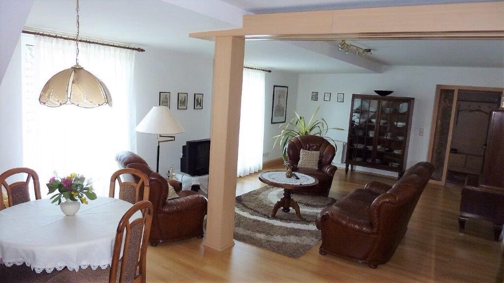Estudio de 30 metros cuadrados con terraza privada, barbacoa y vistas al gran jardín sombreado. Debido a la ubicación en el anexo de la casa principal (planta baja) es muy tranquilo. Cuna y trona disponibles. El apartamento de vacaciones se encuentra cerca del centro de la ciudad y de la estación de tren (a 500 m cada uno). El parque municipal con parque infantil y la piscina cubierta están a unos 200 m. Un aparcamiento gratuito se encuentra a unos 150 m de distancia, las bicicletas se pueden aparcar de forma segura en el patio.
