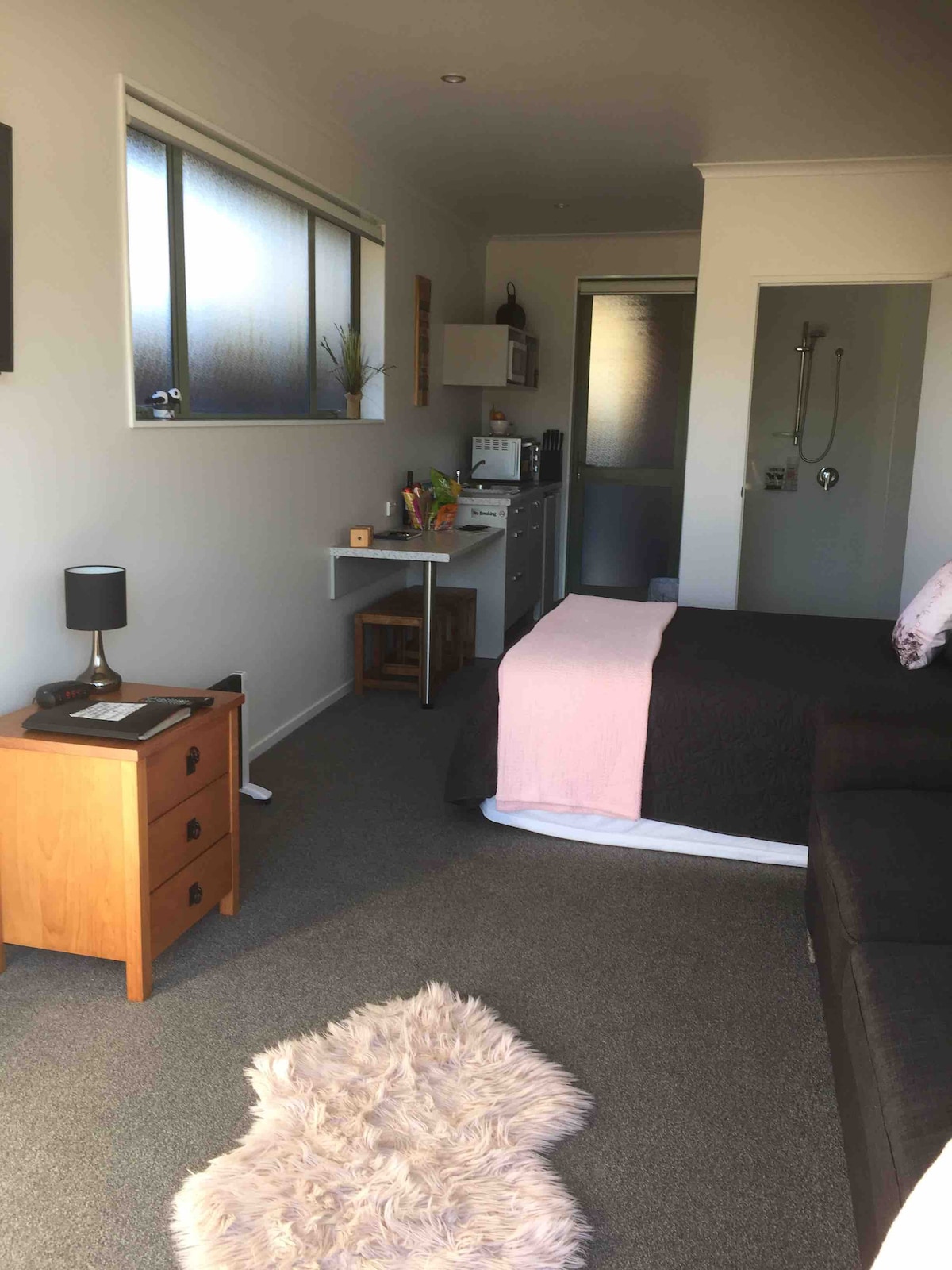 Located on a quiet street within walking distance to the famous West Coast Wilderness Cycle Trail. Only 8minute drive to the heart of Greymouth. Unwind with a movie on Freeview. Check your e-mails with FREE WIFI. This unit has a double bed and a pullout sofa that can accomodate 4 people. Kitchenette microwave, cook plate, conventional oven jug, toaster and private bathroom with toilet and shower. FREE CONTINENTAL BREAKFAST including toast, cereal, juice, coffee etc with own little outside table