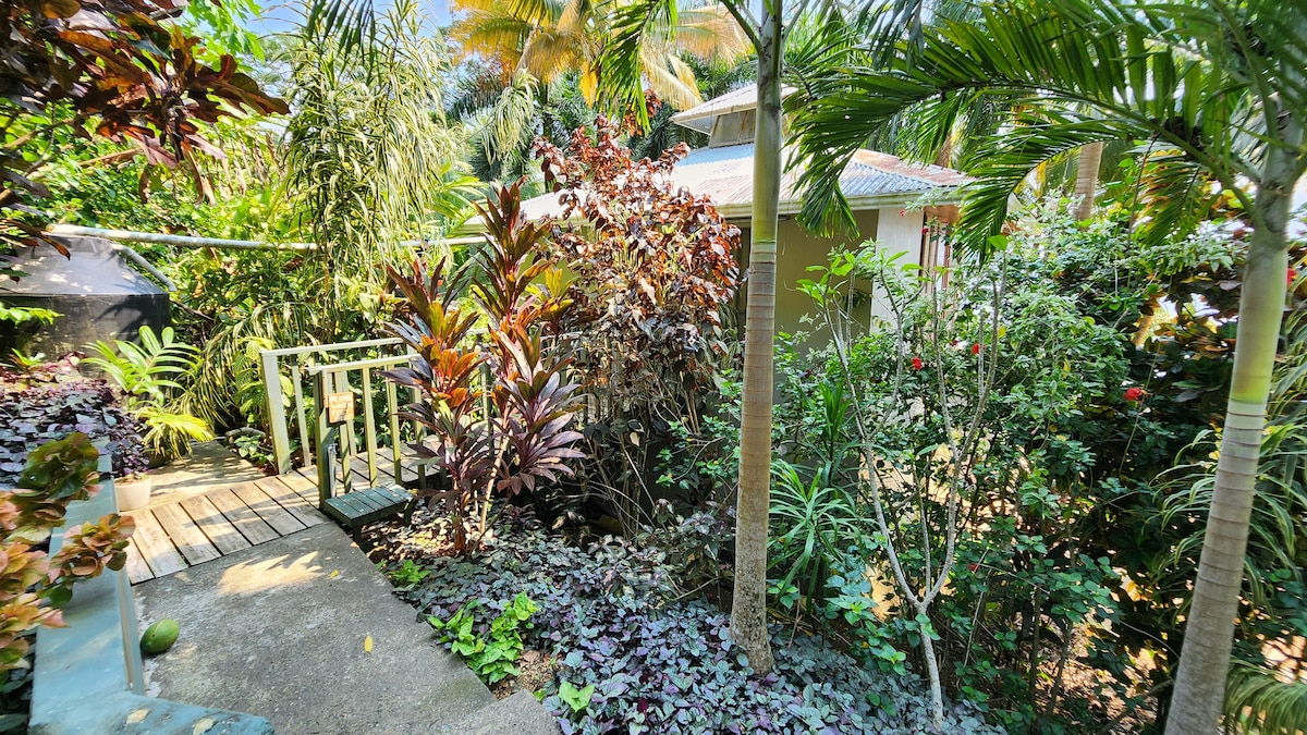 La casa de la piscina ofrece lo mejor de todos los mundos, con una hermosa piscina profunda privada, un entorno selvático y a solo un minuto a pie de la hermosa playa de Paunch. Exuberantes jardines privados rodean la piscina y el patio exterior cubierto del salón/comedor. La casa tiene aire acondicionado en el dormitorio, cómodo salón con TV inteligente, cocina totalmente equipada y un baño y medio. Hay lavadora y secadora privadas, estacionamiento cubierto privado y buen wifi. Hay siete buenos restaurantes a pocos pasos de la casa.