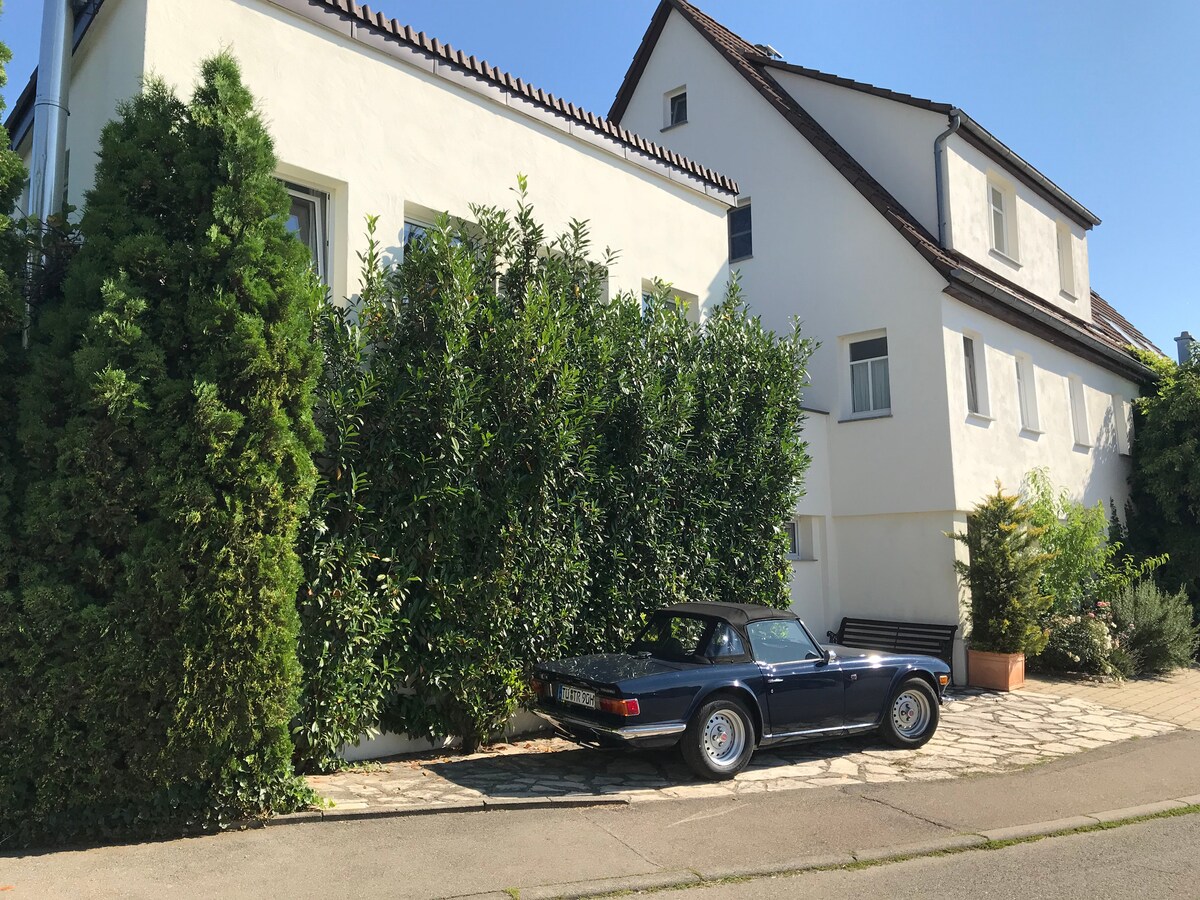 Sit back and relax - in this clean, quiet and stylish accommodation on the edge of the village of Wankheim, in a safe neighborhood, just above Tübingen. Apartment for max. 2 people with small hallway, bathroom, kitchen-living room and bedroom with double bed. There is fast WiFi, coffee, parking and a bus connection to the City. There are fields and woods just outside the door for long walks.
