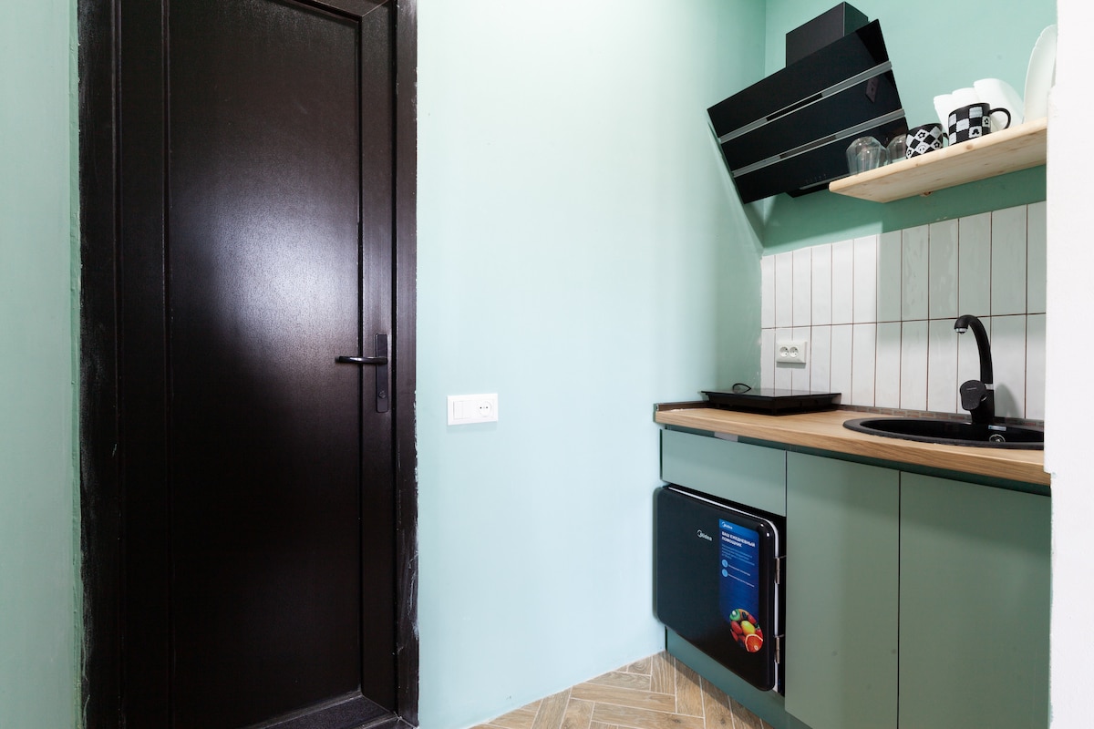 Departamento limpio en el primer piso de fácil acceso ubicado en uno de los distritos centrales más antiguos de Kutaisi, con centros comerciales y de actividades deportivas cercanos. El departamento Buddy puede alojar hasta 4 personas.