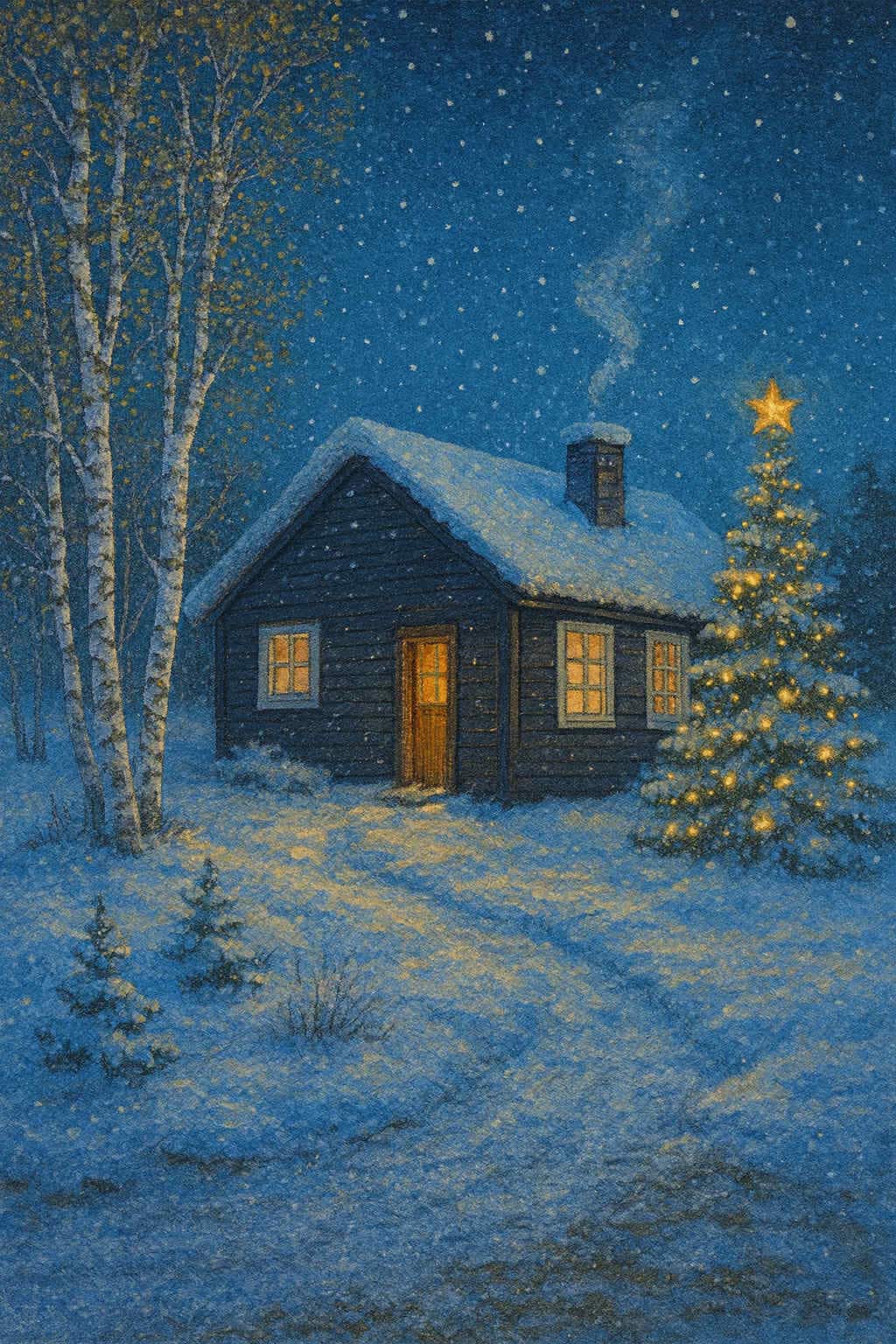 Fjellhytte med peiskos og snøfnugg-magi i julen